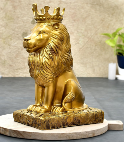 Lion Statue with Crown Sculpture Showpiece.