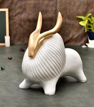 White Yak Sculpture for Home Decor with Golden Horned Decorative Showpiece.